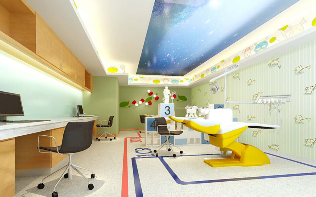 兒童等候區(qū)采用“綠野仙蹤”的夢幻理念,充滿童趣的氛圍,消除兒童的等候緊張感,裝修采用柔軟無棱角設(shè)計(jì),避免兒童的碰撞亂傷。